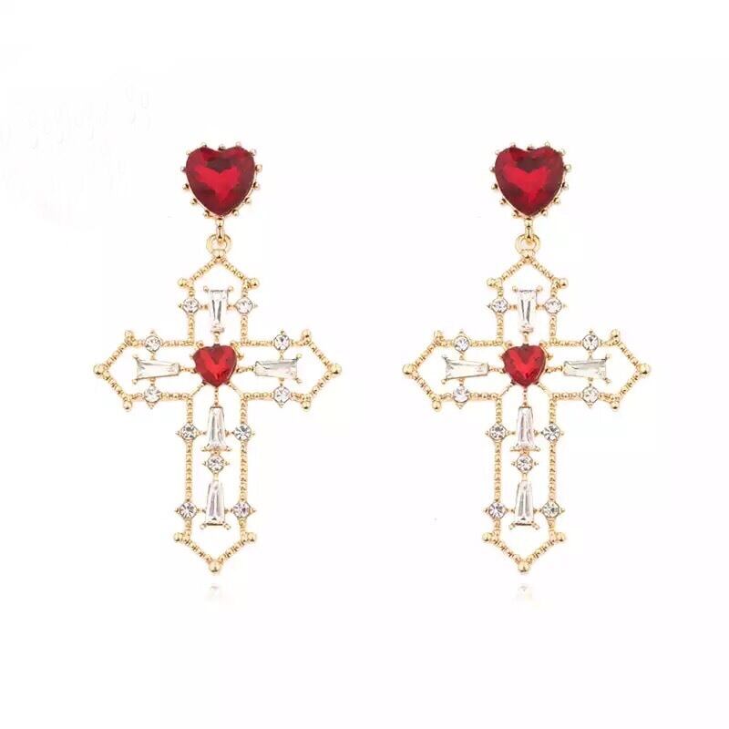 ❤︎即納❤︎《EARRING17》ハート ビジュー クロス ピアス