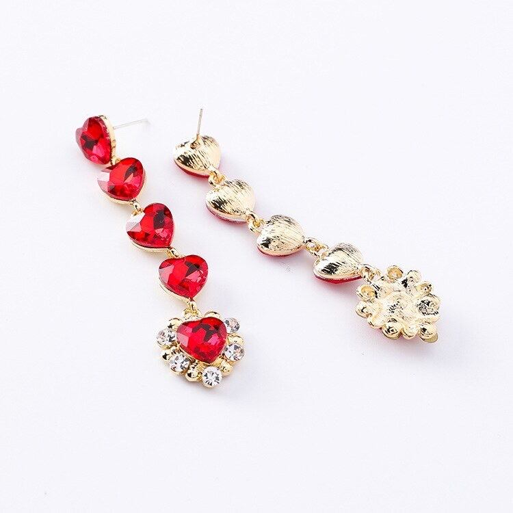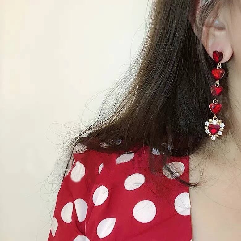 ❤︎即納❤︎《EARRING40》オーロラ ハート ビジュー 5連 ロングピアス