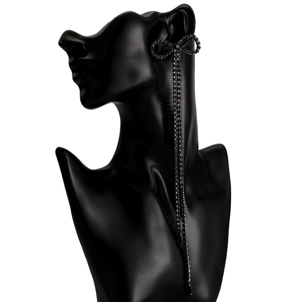 ❤︎即納❤︎《EARRING42》リボン ラインストーン ロングピアス